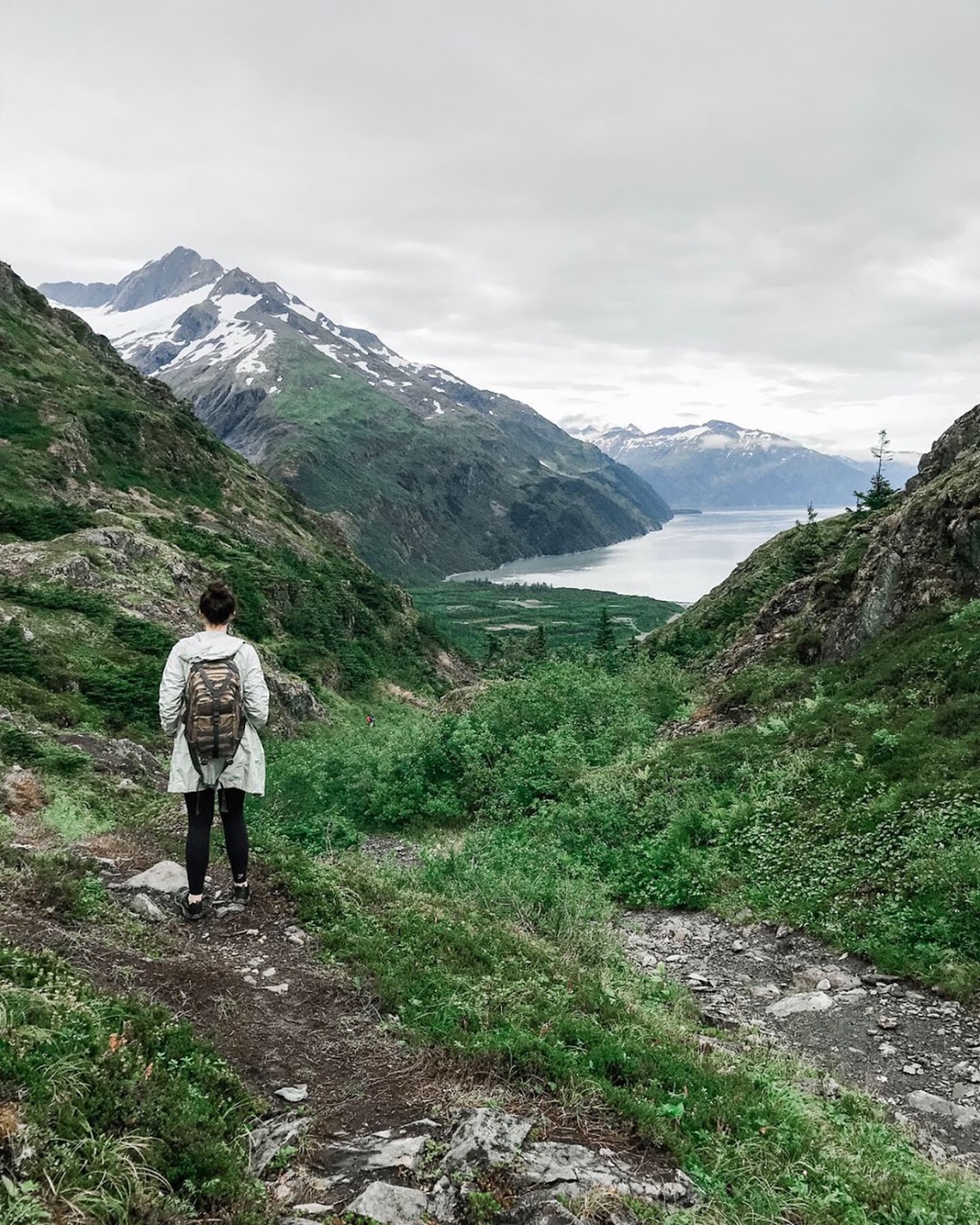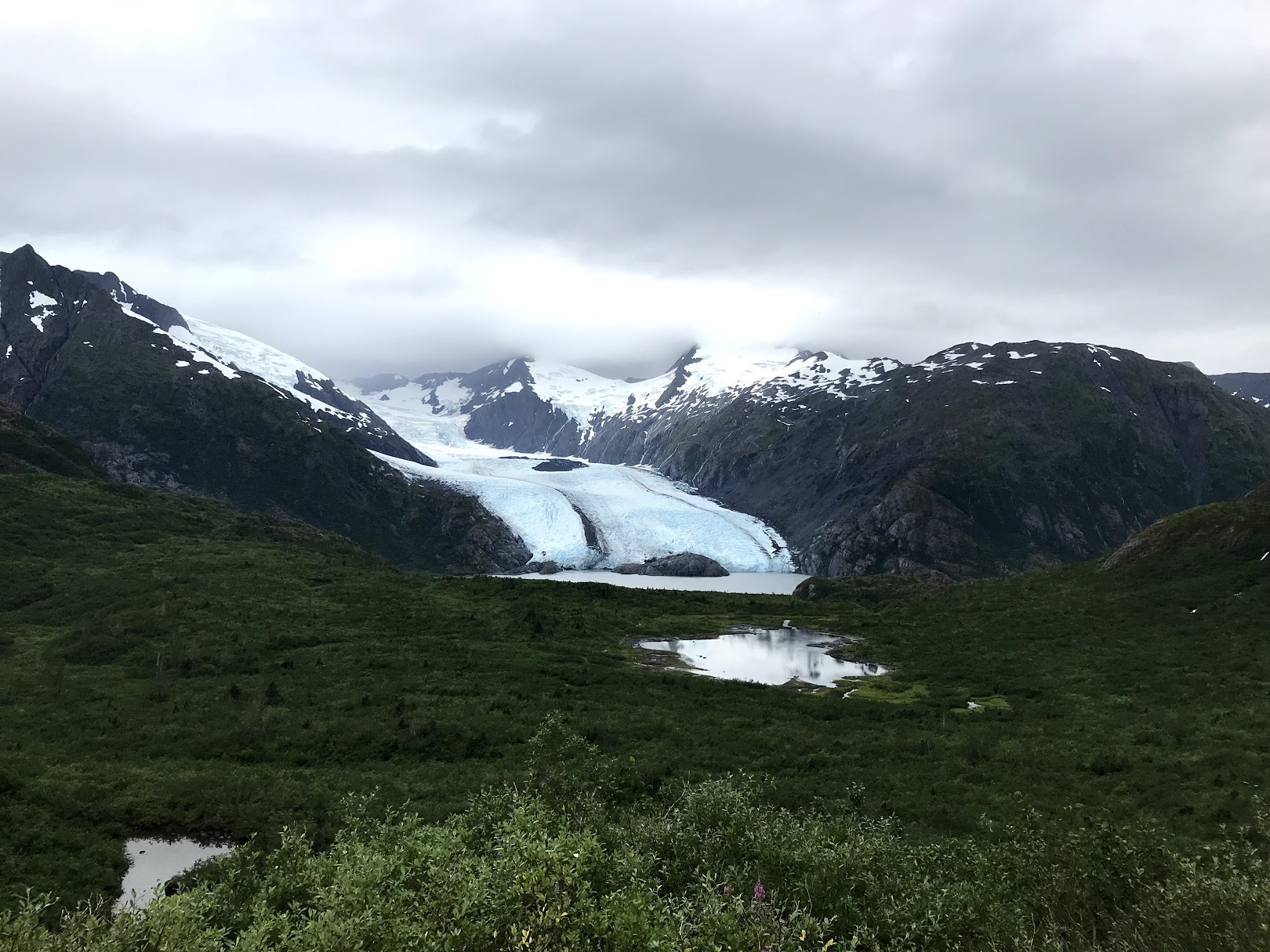 After lunch, we headed to Seward, Alaska to stay for the next couple of days.  We drove along Seward Highway, also known as Alaska Highway 1.  On our route, we pulled over to enter Whittier, AK.  There, we hopped out to begin a short hike to Portage Glacier.  It was a little over a mile hike to view the glacier, but it was actually a pretty rigorous hike!  It was a very rocky path and all uphill.  The elevation is 800’.  The glacier was beautiful, the only unfortunate part of the hike was that we didn’t get as close as we thought we would but still beautiful nonetheless!