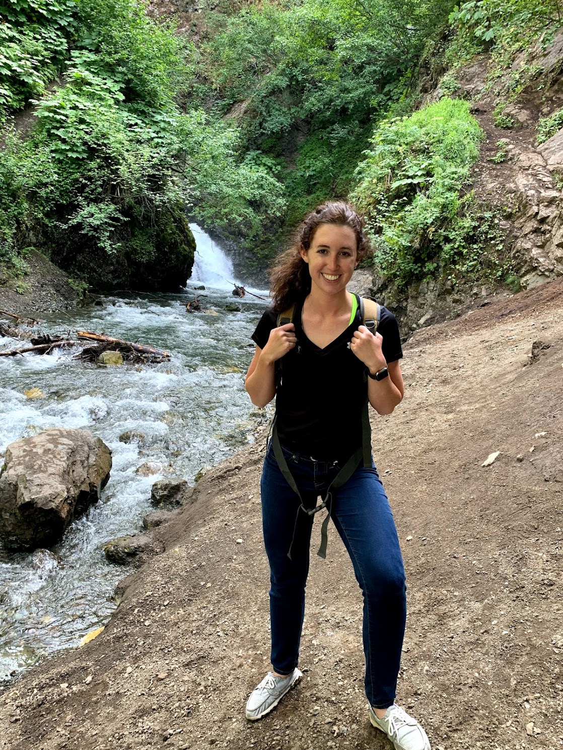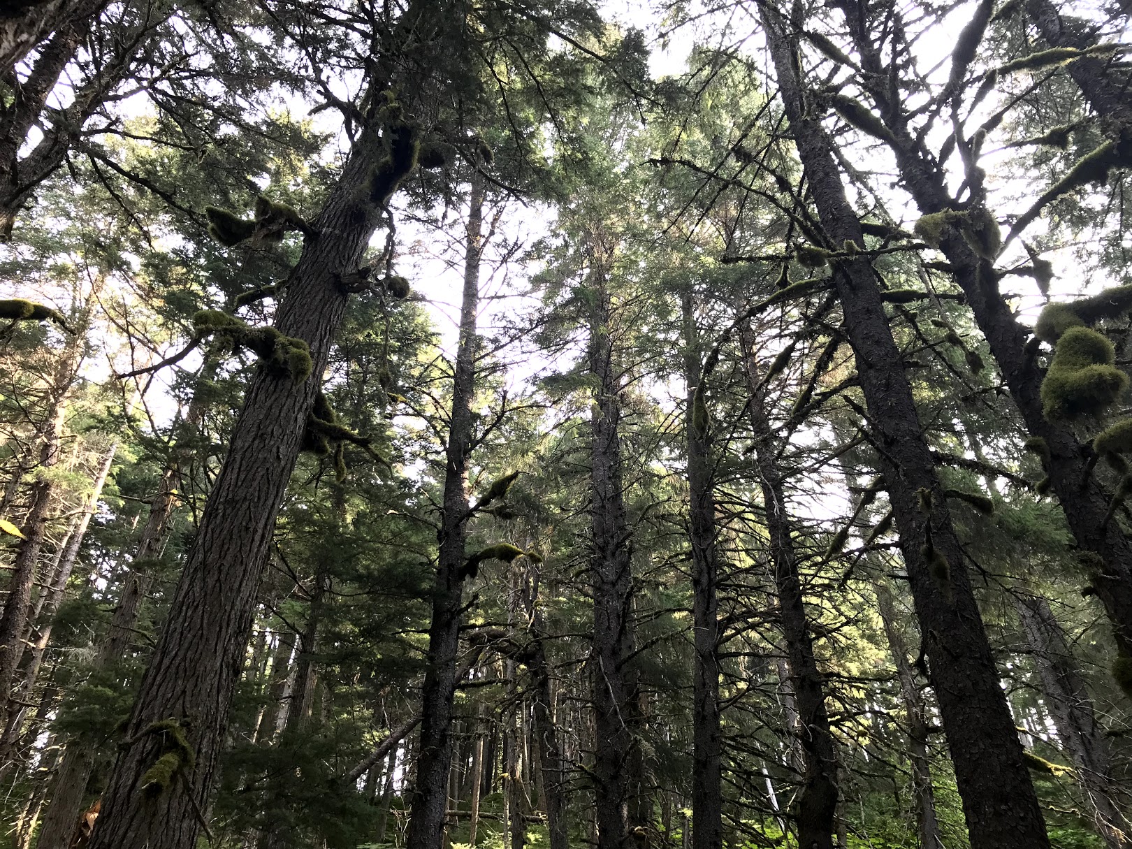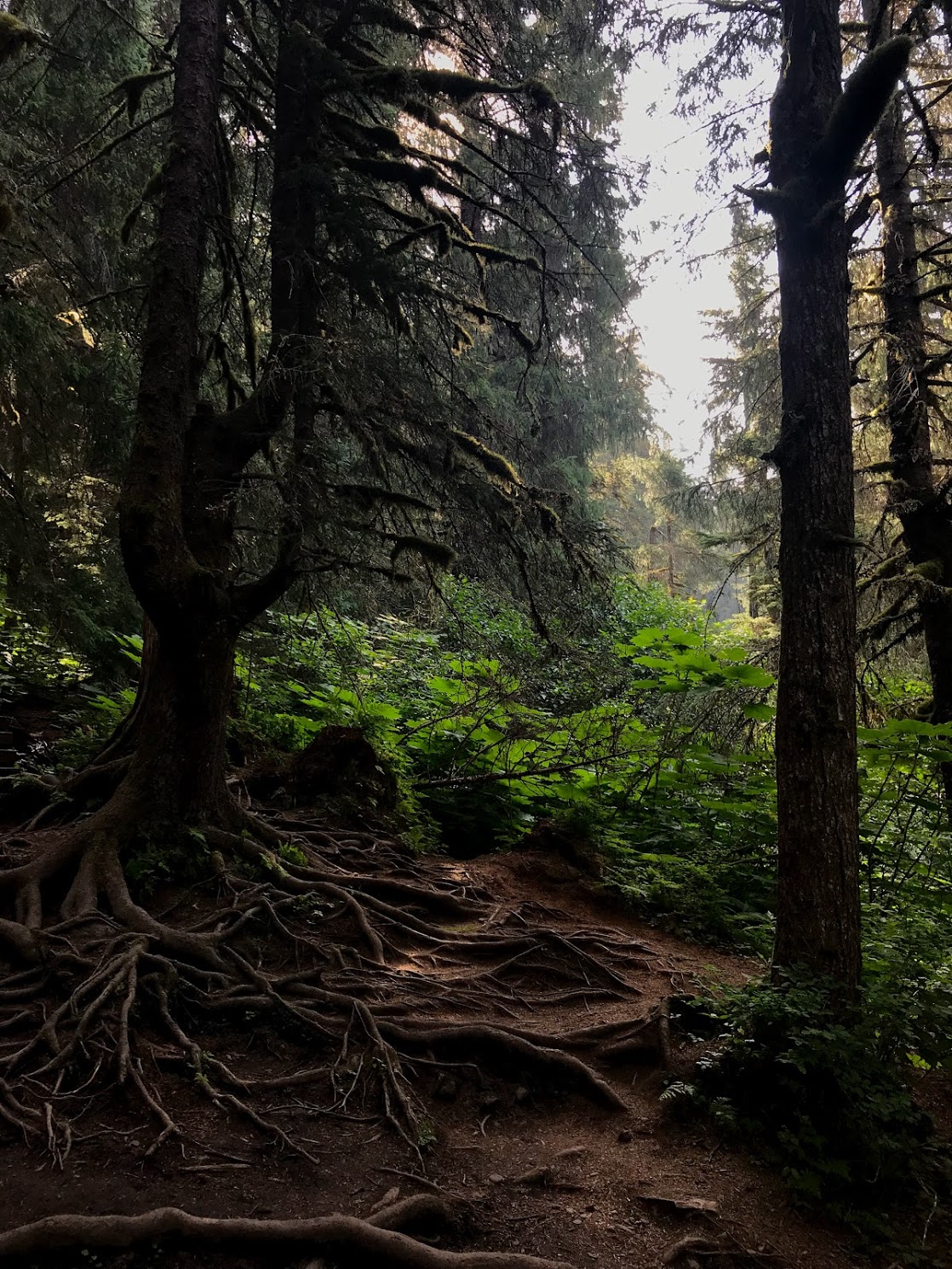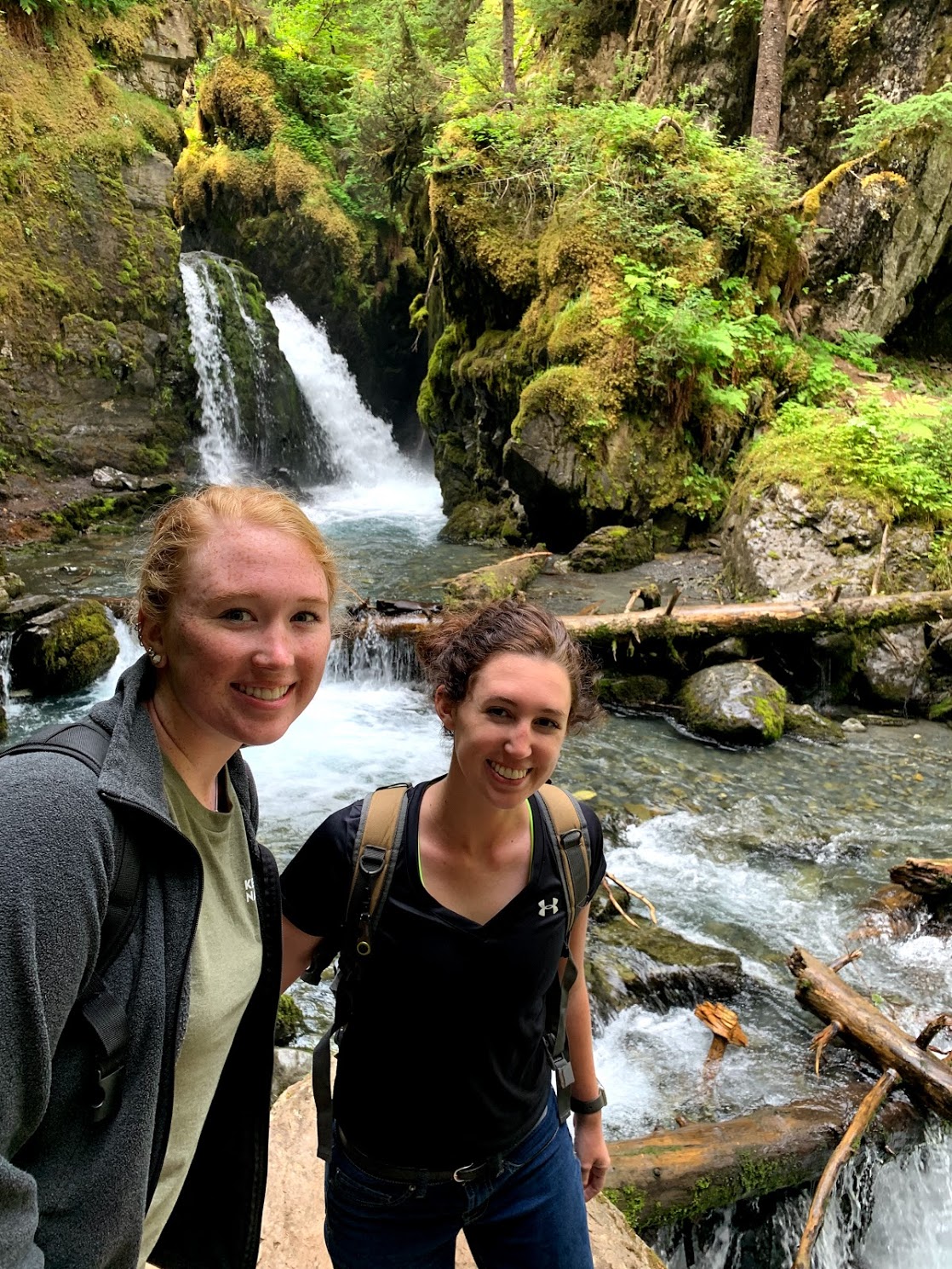 Today, we traveled back to Anchorage from Seward.  We took the same route we did originally, along Seward Highway.  However, on this route, the mountainous view was now a bit hazy on our drive back.  This was due a forest fire (not really sure where) happening in another part of Alaska, and the wind had blown the smoke down our way to cause a hazy look in the view.  So, not as clear of view on the way back, but still an amazing and smooth drive.  Along the way, we stopped in Girdwood for a quick, ½ mile hike to Virgin Falls.  It was a very short, simple hike, but there was no clear path and lots of tree roots, so it may not be ideal for some hikers.  Otherwise, very easy and a great waterfall at the end!  Got back in the car and stopped in Chugiak, AK to hike to Thunderbird Falls.  Jessi and I hiked over 2 miles to see the falls from an overlook, but then to head down to the bottom of the falls along its creek.  This hike was very uphill, downhill… great workout!
