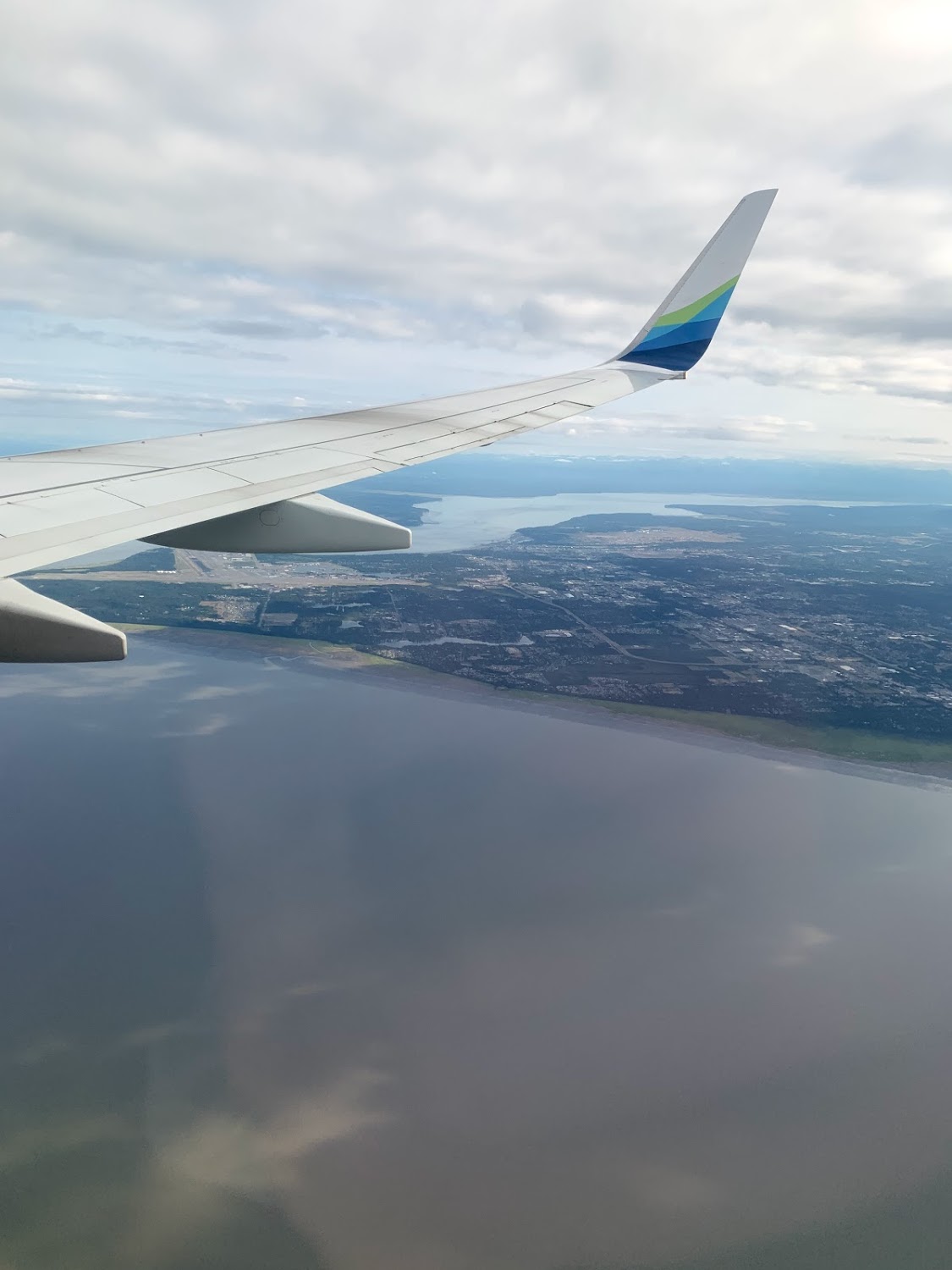 We flew out of Seattle at about 6 AM.  Of course, time hadn’t really bothered us yet because we were still set on Indiana time about 3 hours ahead.  So, we went to the airport and got ready for our flight to Anchorage.  It was about a 4-hour flight from Washington to Alaska.