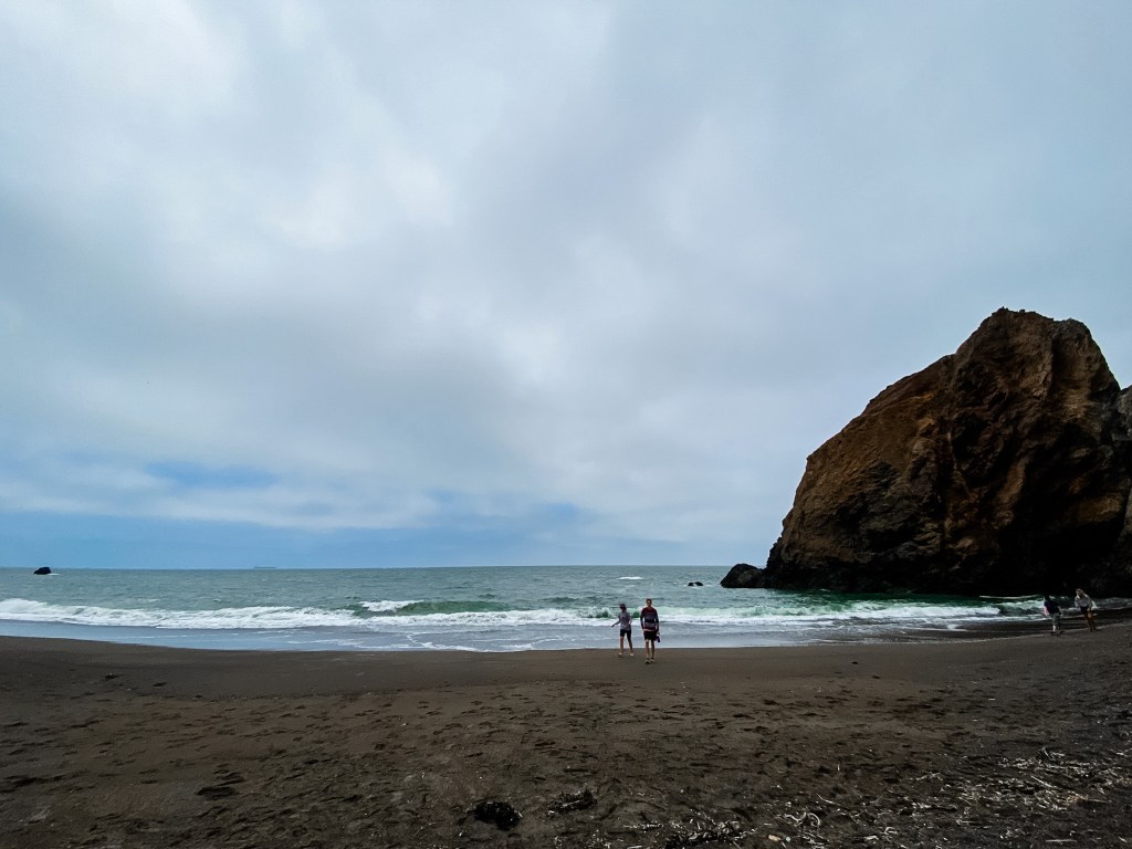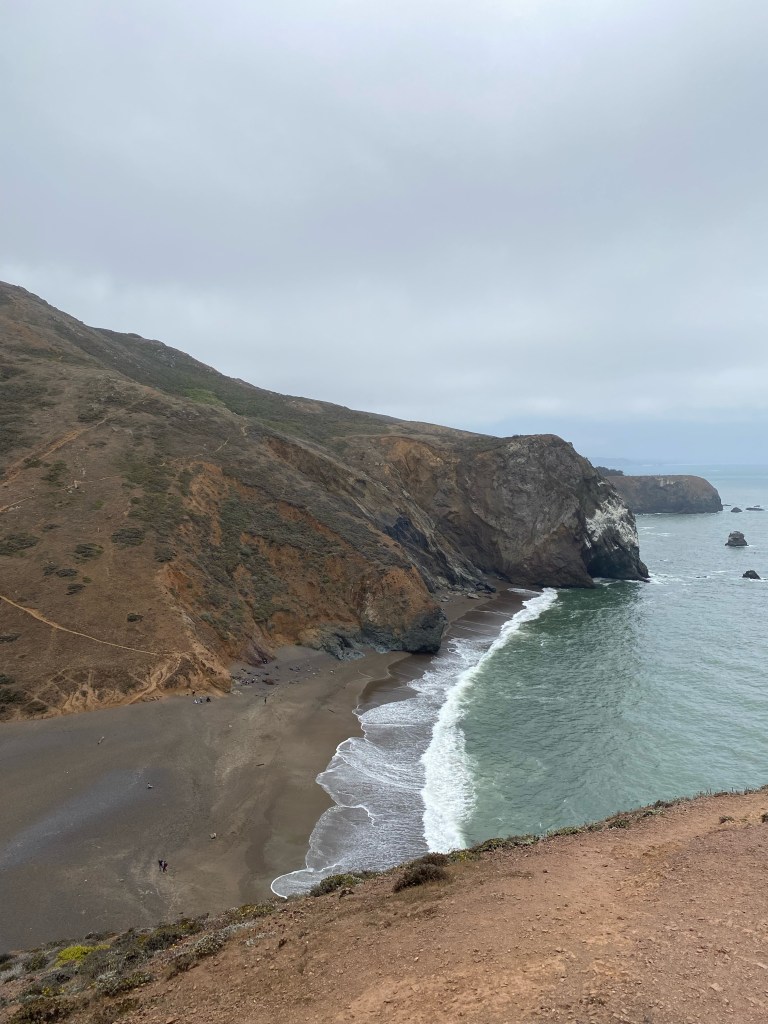 There were a lot of nature walks on this trip – which Mitch and I both thoroughly enjoyed! 😊 Marin Headlands is in Sausalito, CA. We hiked to a beautiful beach, called Tennessee Beach (yes, seriously). It was an amazing hike to just see the vastness of California. To see all this land – mountains and hills and tall trees and beautiful grasses – then you hit the edge of the state, the edge of the continent really, and all you see is blue. A deep blue ocean – with so many boats in the distance. It was a beautiful beach – with the opportunity to hike up to a ledge and see it from above, so naturally that’s where Mitch and I adventured to. Pictures below.