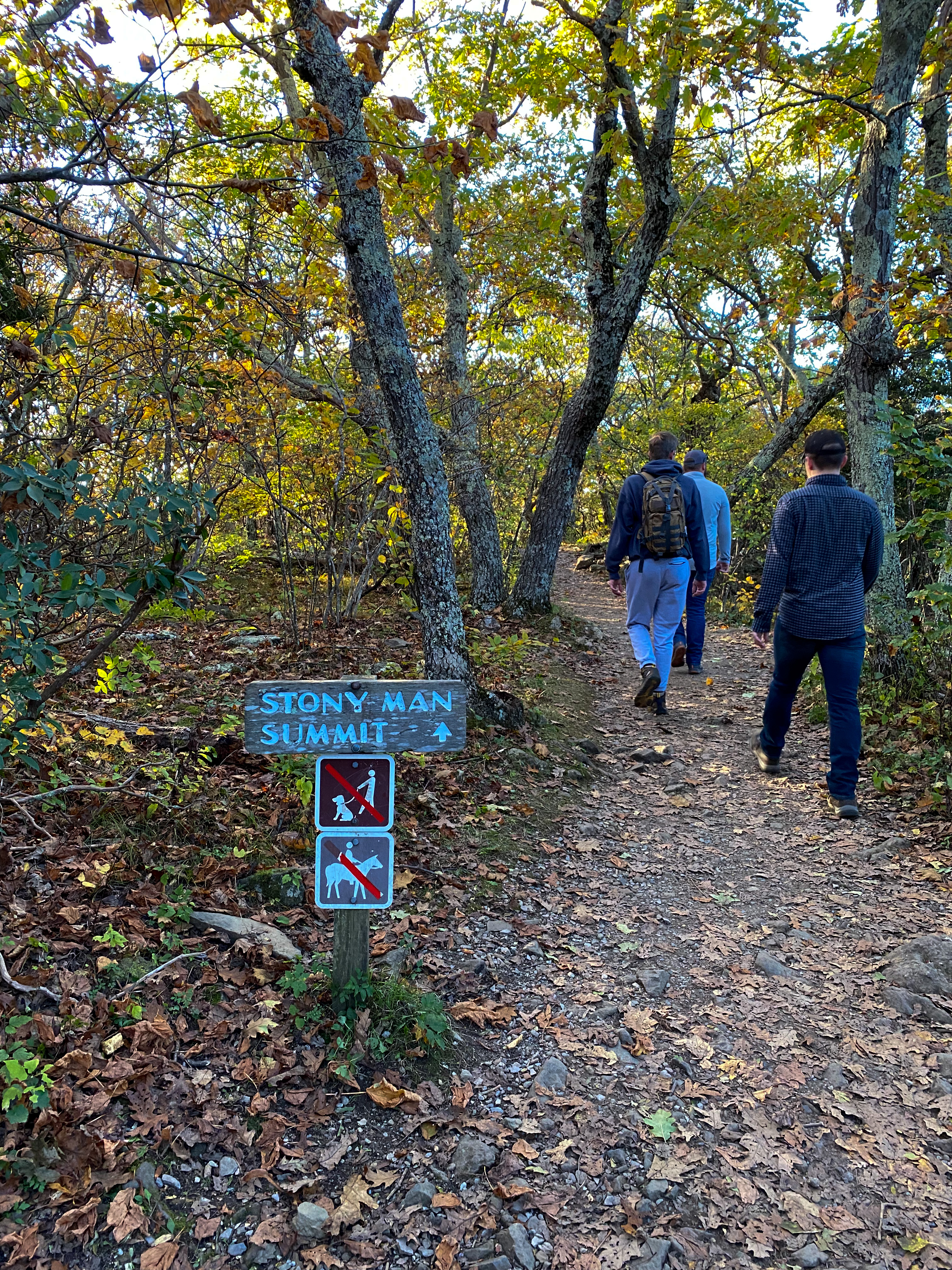 The second day, we went to a couple of different trails. First, we walked the Milam Gap Trailhead. AllTrails link here. This was a good hike – lots of beautiful, fall trees along the way. Downside was that we didn’t really have a destination. We stumbled upon a cemetery and turned around 😂. BUT that was all worth it, because it gave us time to explore our second hike. We drove north of the park to the Little Stony Man Trailhead. THIS IS THE TRAIL TO HIKE. It was incredible.