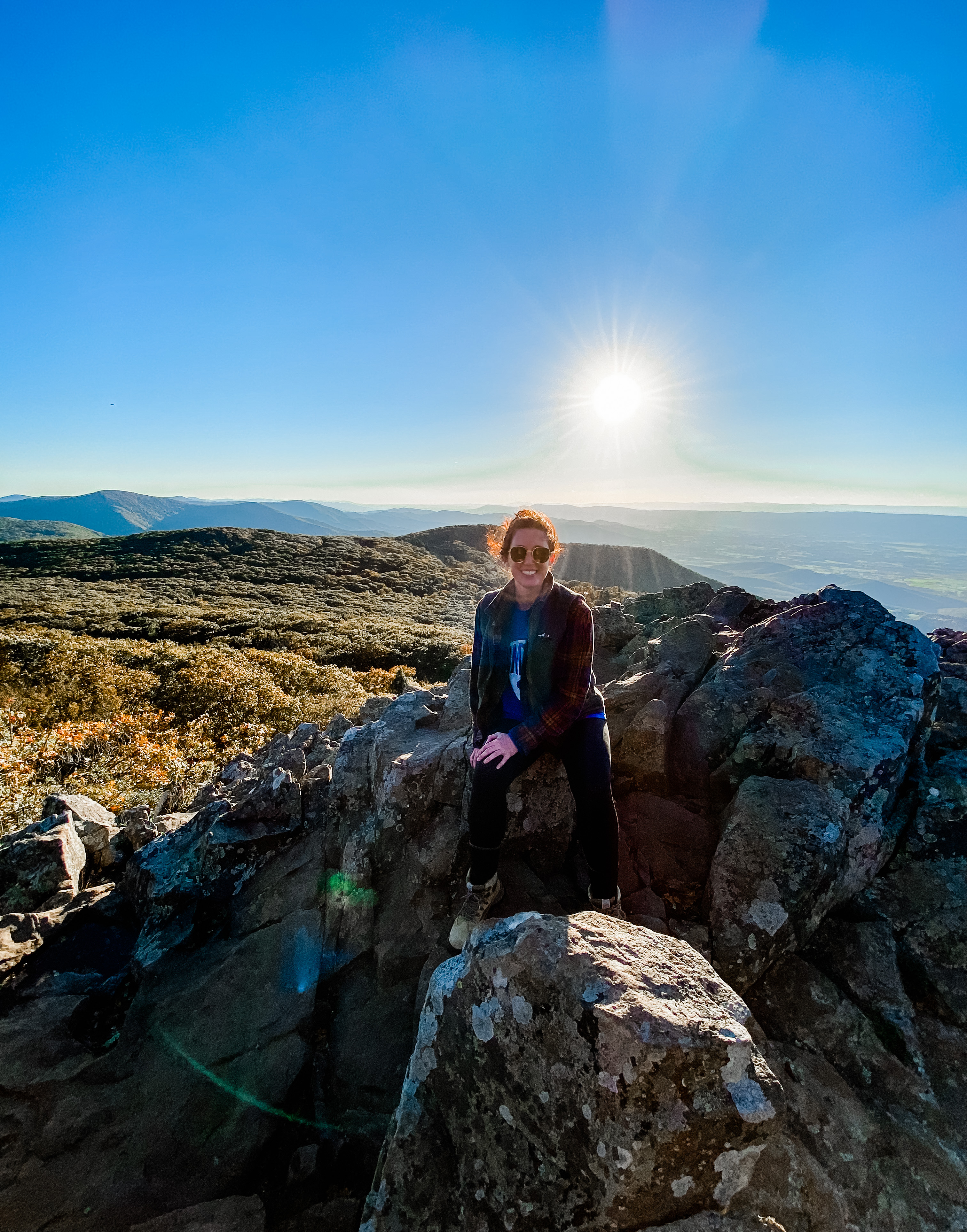 Little Stony Man Trailhead was about two miles to the top of this beautiful overlook. I’m attaching pictures below. If you hike this, I recommend good hiking shoes (very similar pair to mine are linked here), water, and a ponytail to put your hair up – it was WINDY at the top.