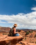 After Hickman Bridge, we drove to Panorama Point to snap some pictures. This view gave a great scenery landscape of a huge part of the park. We then kept going up the road to Sunset Point Trail and hiked up to the viewpoint there. Mitch and I decided to hike further to Sunset Point – the trail end. We were all by ourselves out there. It was magnificent scenery, an easy hike, plenty of sitting space on the rocks, and lots of opportunities for pictures. The only thing I’ll warn you about is the wind. It got pretty windy up there, so I had to be careful with my phone tripod.