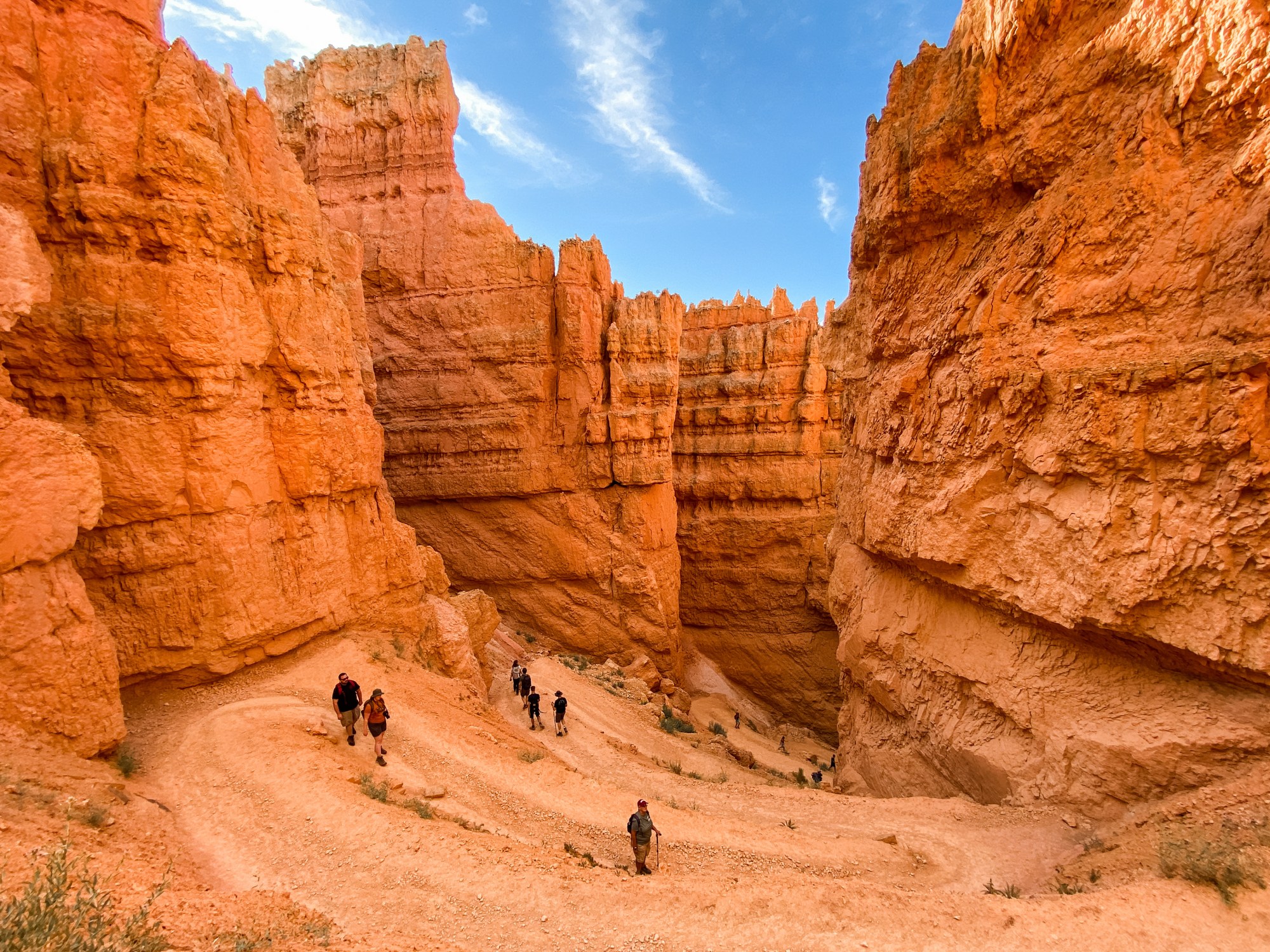 We went towards Queen’s Garden. It’s about a 1.6-mile hike from that point to get back to the entrance of these trails. The trail itself was spectacular. The views from within the canyon were beautiful. Blue skies, orange hoodoos, and warm temps.